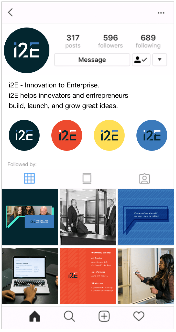 Here are the suggested sizes for social profile icons utilizing the i2E logo and mark. Use the same colorways across all platforms to create brand consistency and recognition.